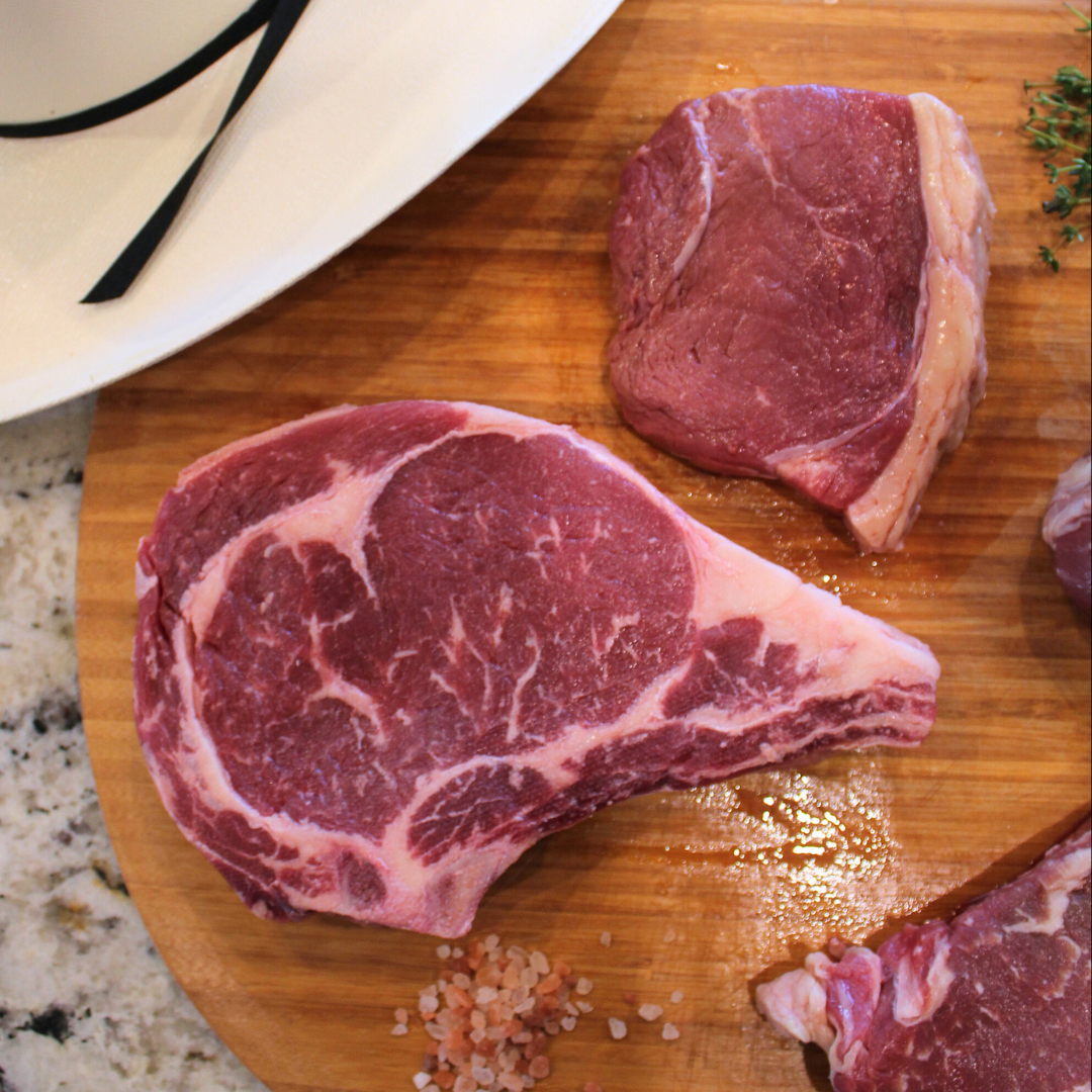 Our big, family-sized Bone-In Ribeye steaks are a grilling sensation, delivering a symphony of bold steak flavors perfect for outdoor grilling! These steaks boast a soft, juicy texture, a balanced marbling ratio and that distinctive JT2 Beef aged steak taste we all love and crave. It's no wonder these Bone-In Ribeyes are among our best sellers.